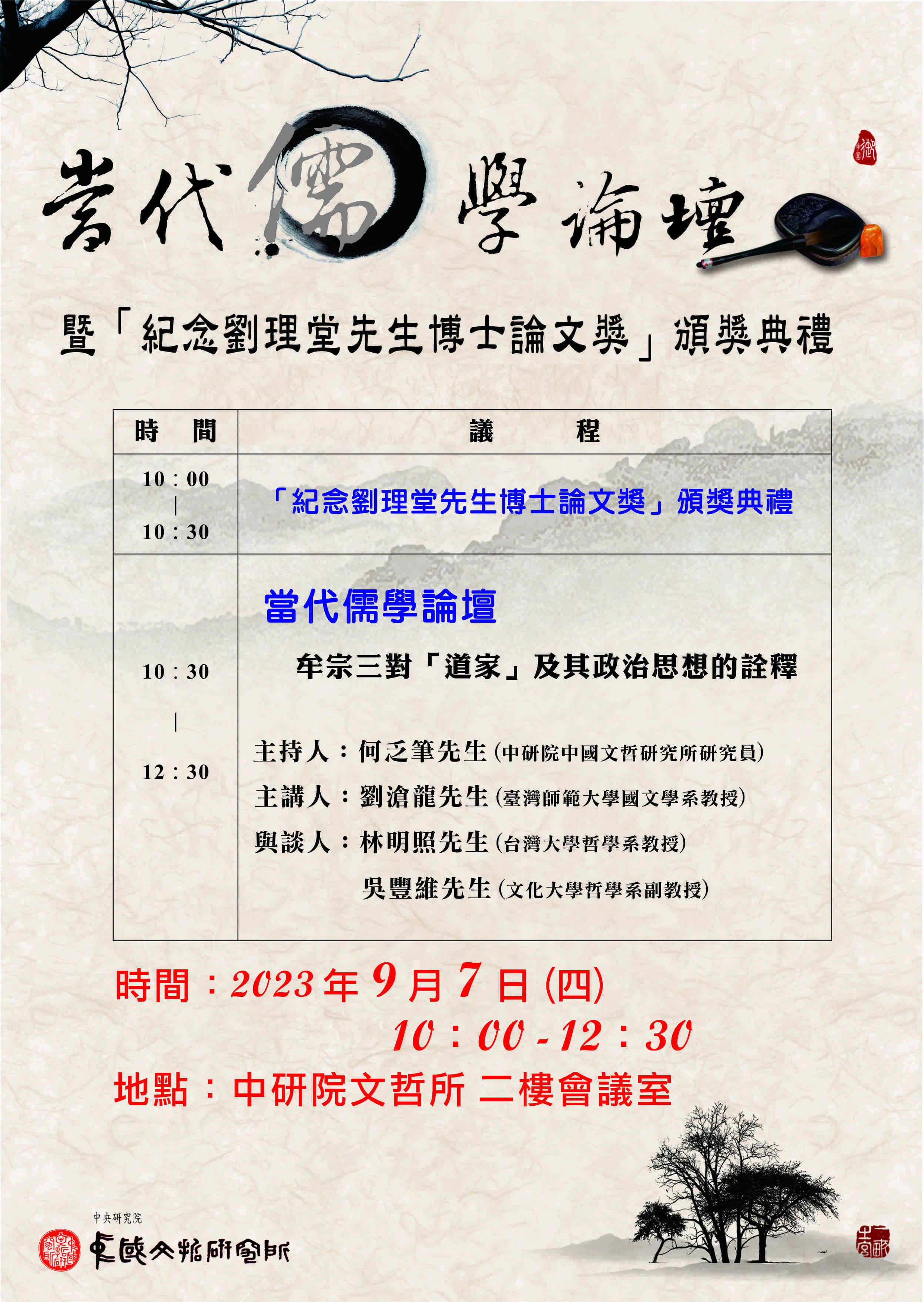「當代儒學論壇」暨「紀念劉理堂先生博士論文獎」頒獎典禮