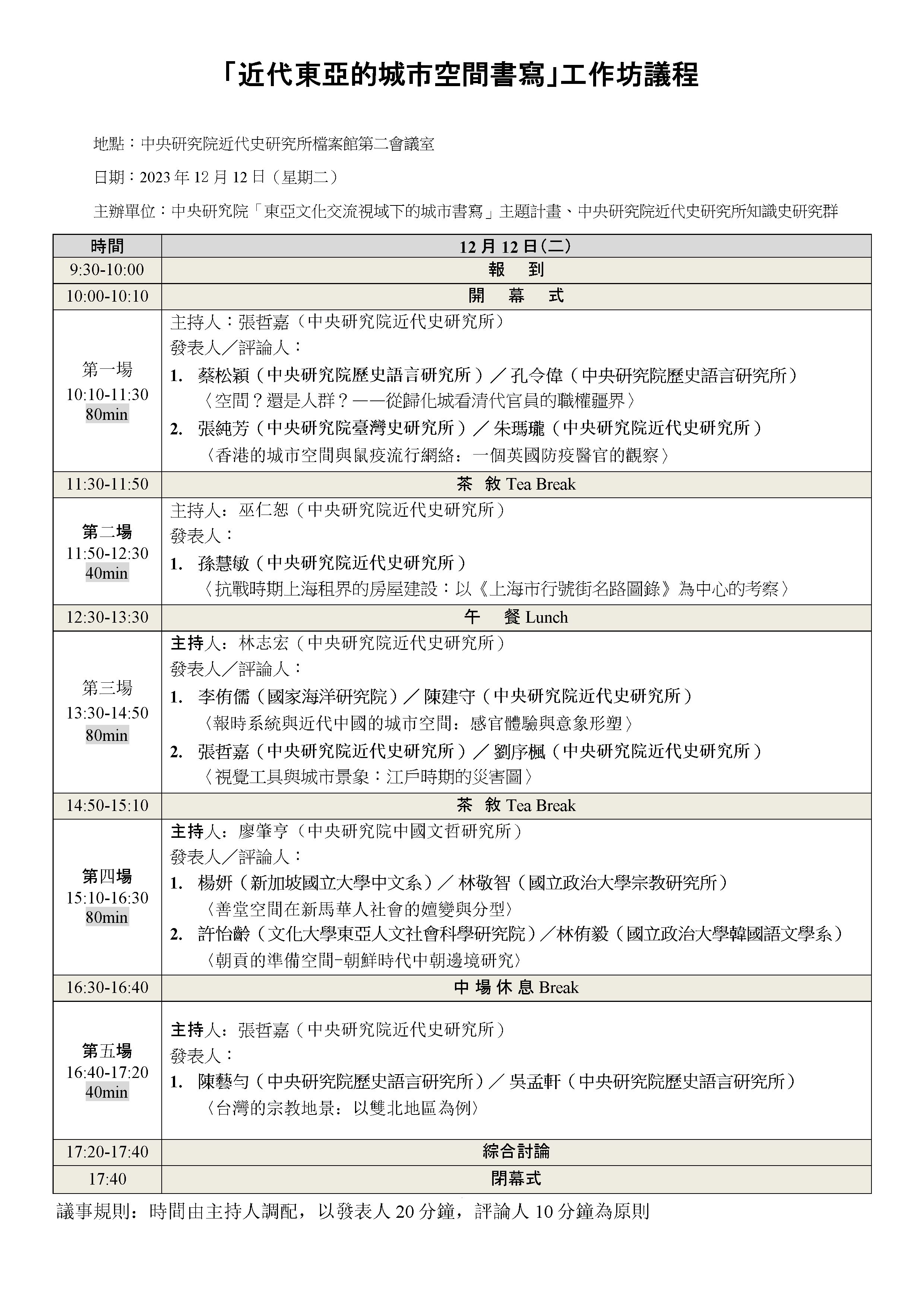 主講人: 參見報名連結議程 時間:12月12日(二) 地點: 中央研究院近代史研究所檔案館第二會議室 工作坊詳細議程以及演講、工作坊海報繫於附件。 報名截止:12月5日(二) (如人數額滿將提前截止) **報名連結** 檔案下載