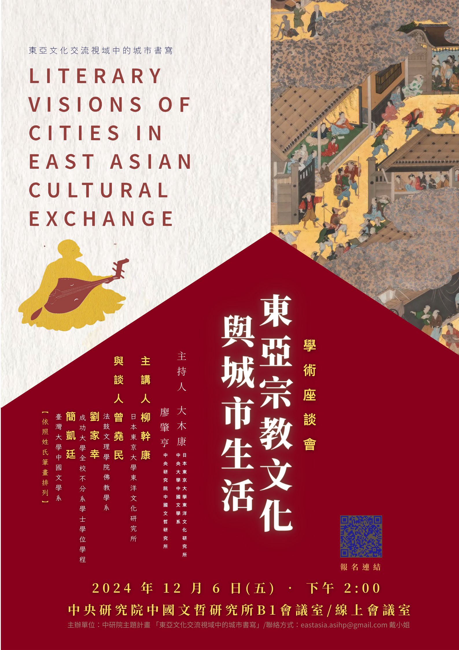 主持人: 大木康(日本東京大學東洋文化研究所/中央大學中國文學系) 廖肇亨(中央研究院中國文哲研究所) 主講人: 柳幹康(日本東京大學東洋文化研究所) 與談人: 曾堯民(法鼓文理學院佛教學系)、 簡凱廷(臺灣大學中國文學系) 劉家幸(成功大學全校不分系學士學位學程) 【依照姓氏筆畫順序排列】 檔案下載