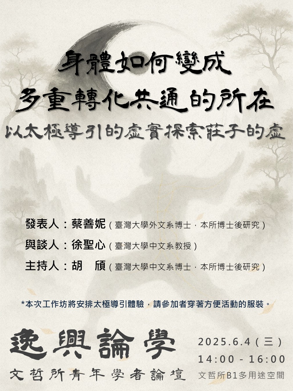 (這次工作坊來自於一篇與德勒茲相關的論文,然此次報告將只專注於太極拳與莊子的部分。)