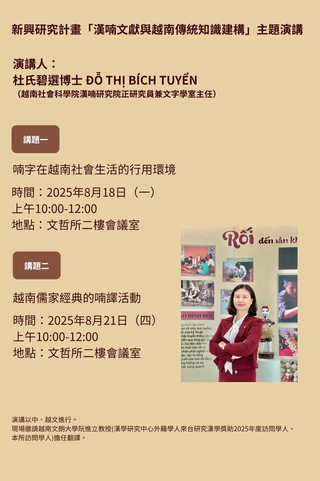 演講人:杜氏碧選博士(ĐỖ THỊ BÍCH TUYỂN。越南社會科學院漢喃研究院正研究員兼文字學室主任)