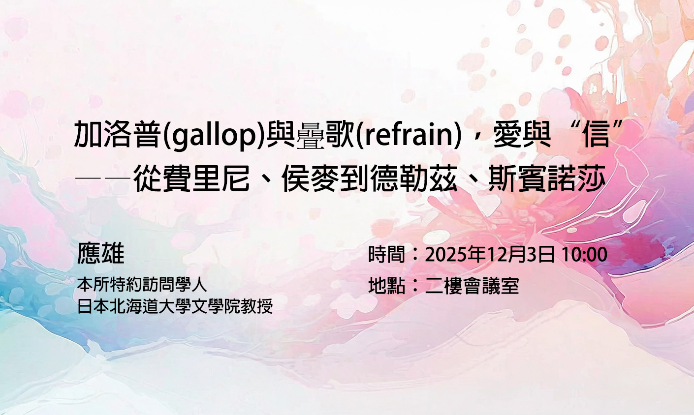 主講:應雄(本所特約訪問學人;日本北海道大學文學院教授)