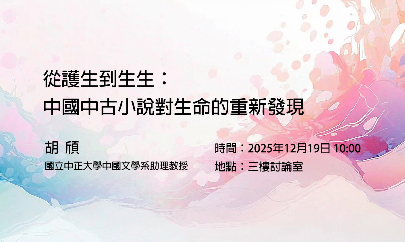 【東亞文化交流視域下的城市書寫/東亞文化交流視域下的動物世界】 講者:胡頎 (國立中正大學中國文學系助理教授) 主持:陳威瑨 (本所副研究員) 視訊連結(Google Meet):https://meet.google.com/fsf-rsyq-rzq 檔案下載
